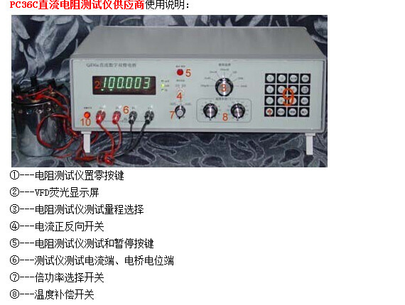 pc36c直流低电阻测试仪是一种由高稳定精密恒流源、带自校的高精度数字电压表和cpu微处理器组成的5位半台式数字式直流电阻测试仪,其测量结果用6位vfd荧光显示。该仪器具有价格低廉、测量精度高、性能稳、使用方便等特点,它适用于测量各种电线、电缆的电阻值、各类线圈、电动机、变压器绕组的电阻,特别是具有自校功能(用户备用bz3标准电阻,就可以校准),提高仪器的精度,省去了操作人员的送检时间。因此该仪器广泛应用工厂、科研单位的工作场地和实验室。